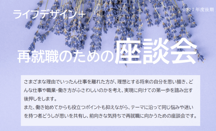 ※雇用保険受給中の方は、求職活動実績の対象となるセミナーです