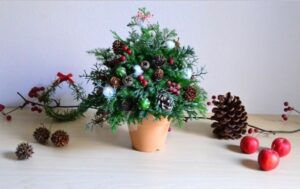 オアシスにエバーグリーンを挿して木の実などで飾り、自分好みのミニツリーをつくってみませんか?お子さんと一緒に参加できます。